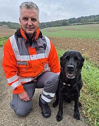 Polizeihauptkommissar Thomas Kaufmann ist Mitglied der DRK-Rettungshundestaffel und hilft Menschen in Not.